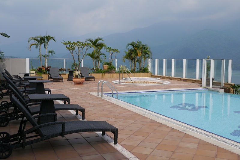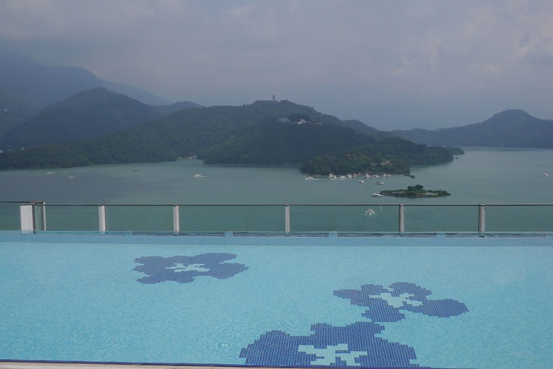 泳池與日月潭水連成一線,美呆了~~如果可以來這兒住上一晚,就可以好好的在這裡享受一番了。