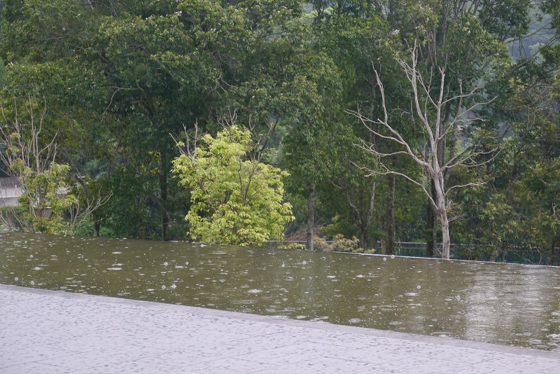 坐下來不到10mins,竟然下起雨來了………一開始還覺得雨水滴落水面的畫面好美…………