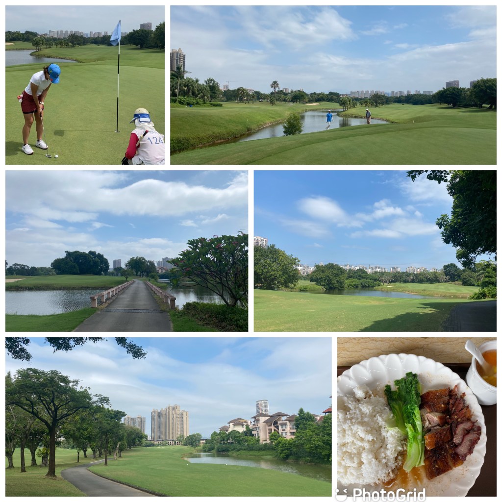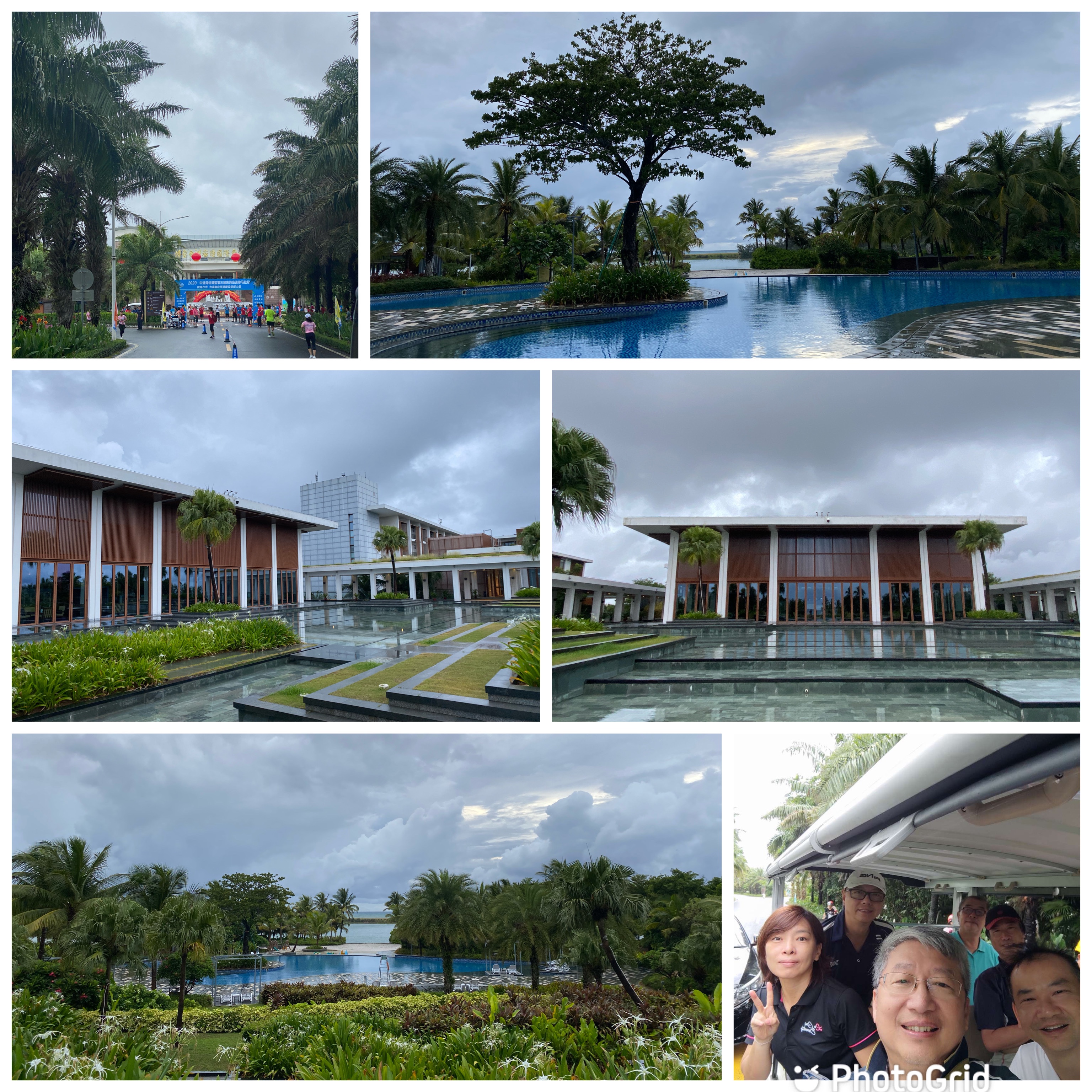 第二天的早上,我們密切的追蹤著颱風的消息,吃完早餐之後竟然沒有下雨,真是太幸運了!我們這天打的球場是「博鰲亞洲論壇國際會議中心高爾夫球會」,聽起來很尊貴,感覺自己是元首級的貴賓,不過早上搭接駁車要去球場的路上剛好遇到一個小型的馬拉松比賽把道路給封了,暫時過不去我們也就幫那些跑步的同學們吶喊加油,最後是由工作人員幫我們開道,也算是特殊的經驗。
